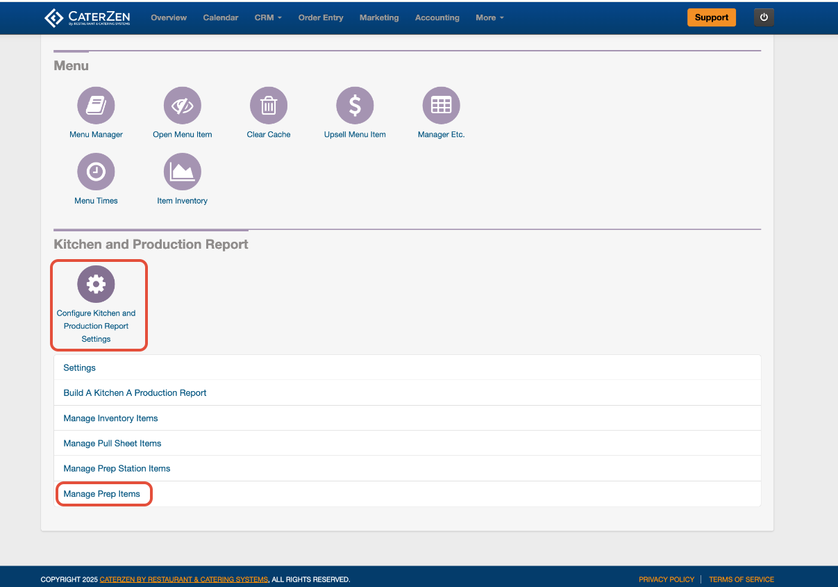 Go to Admin > Kitchen Production > Prep Items