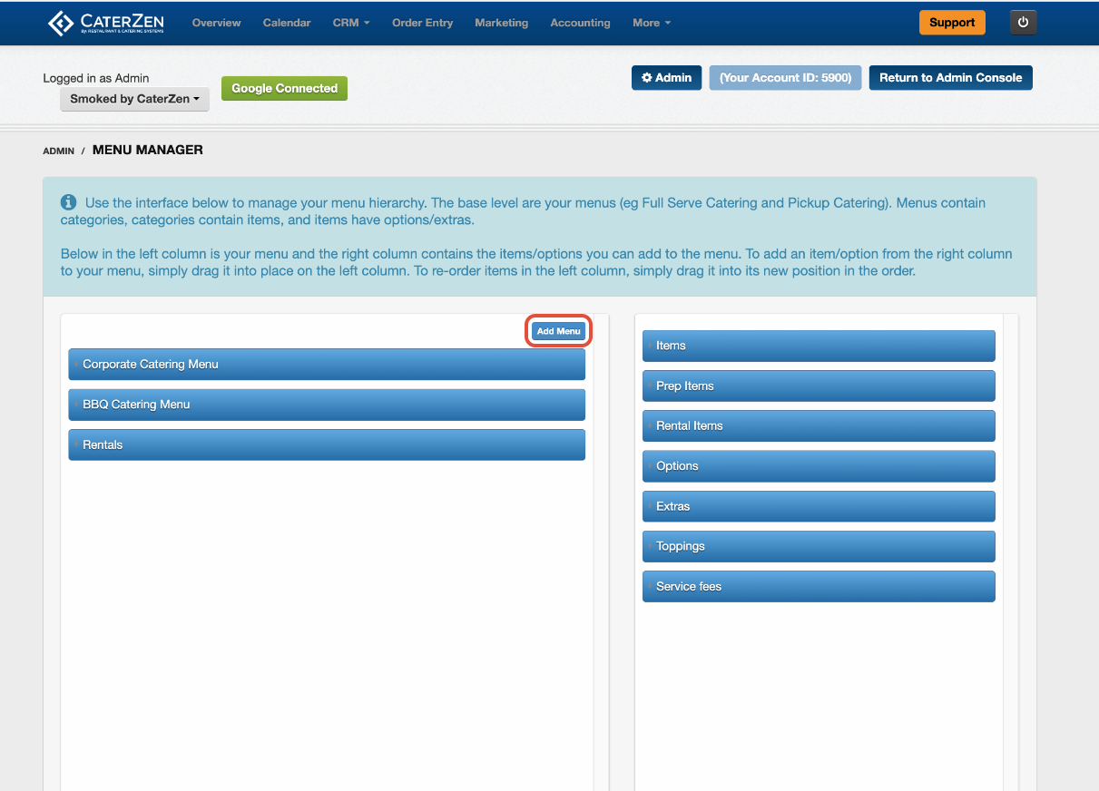 Menus control which items are available for ordering in CaterZen. All menus are created and managed in Menu Manager, but not all menus are visible to the same audience.