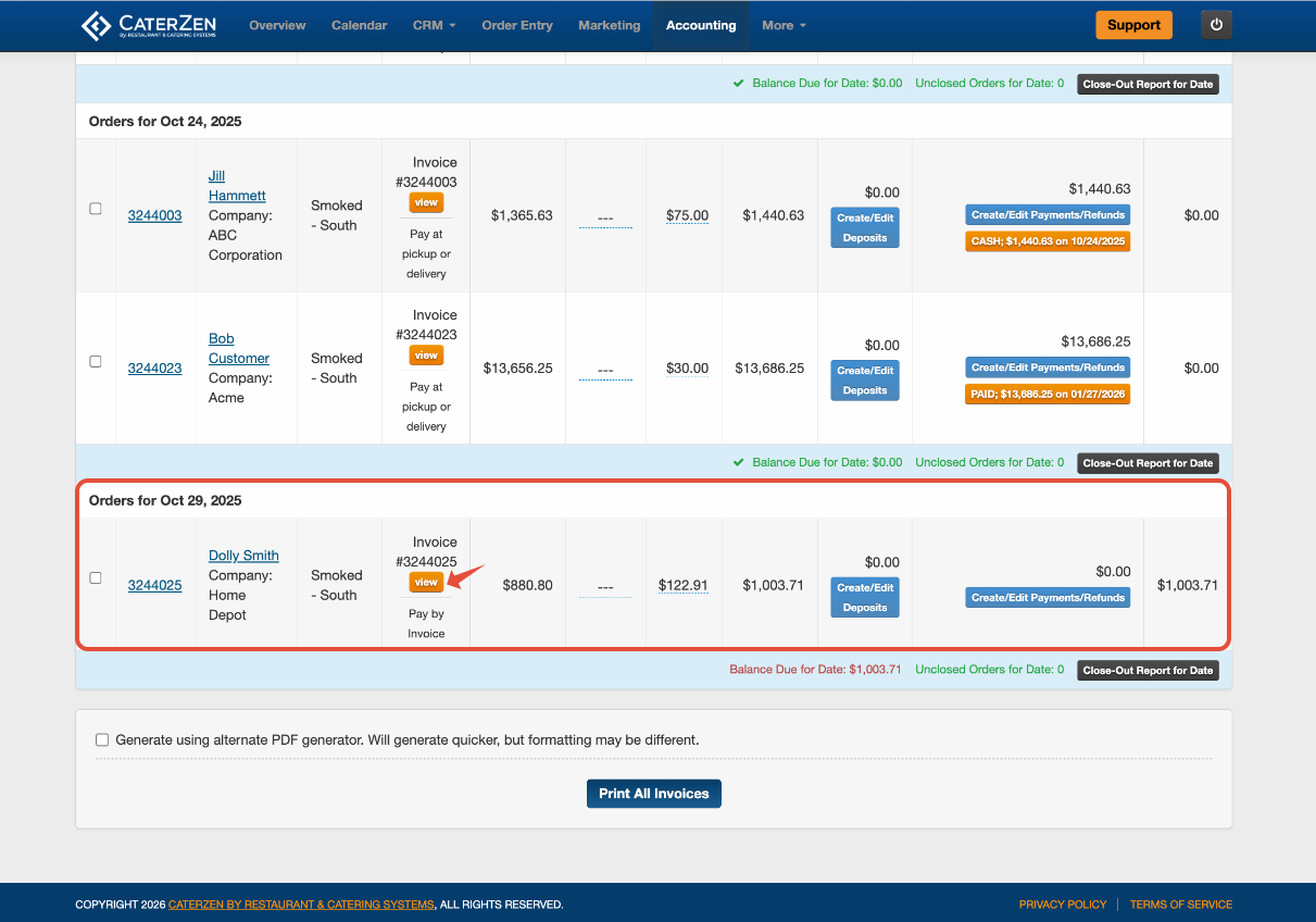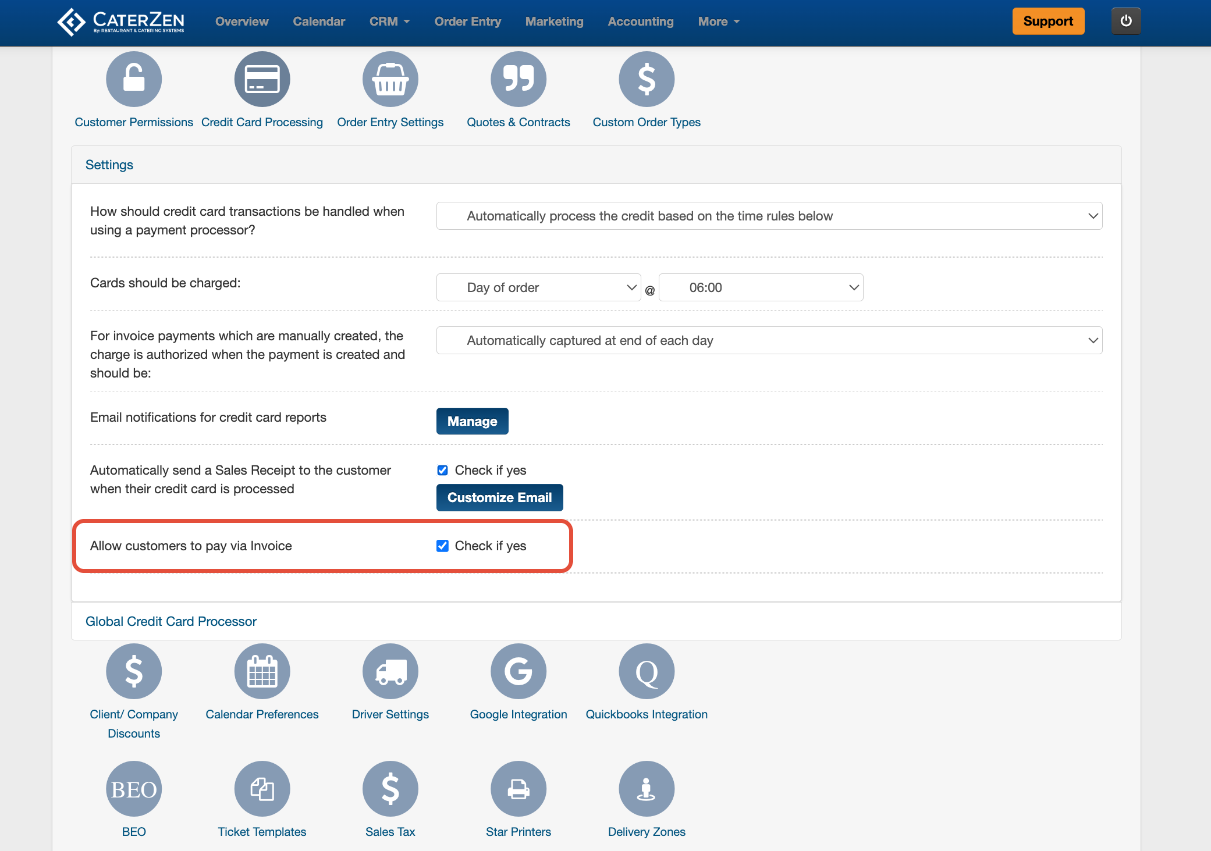 With CaterZen, The Pay By Invoice feature allows you to send an invoice to a Customer and give them the option to securely pay online using a credit card—as long as you're connected to a supported credit card gateway and have the feature enabled.
