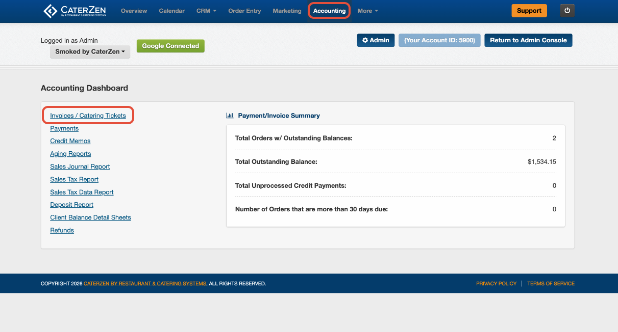 Step 1: Locate the Invoice- Click on the Accounting tab.