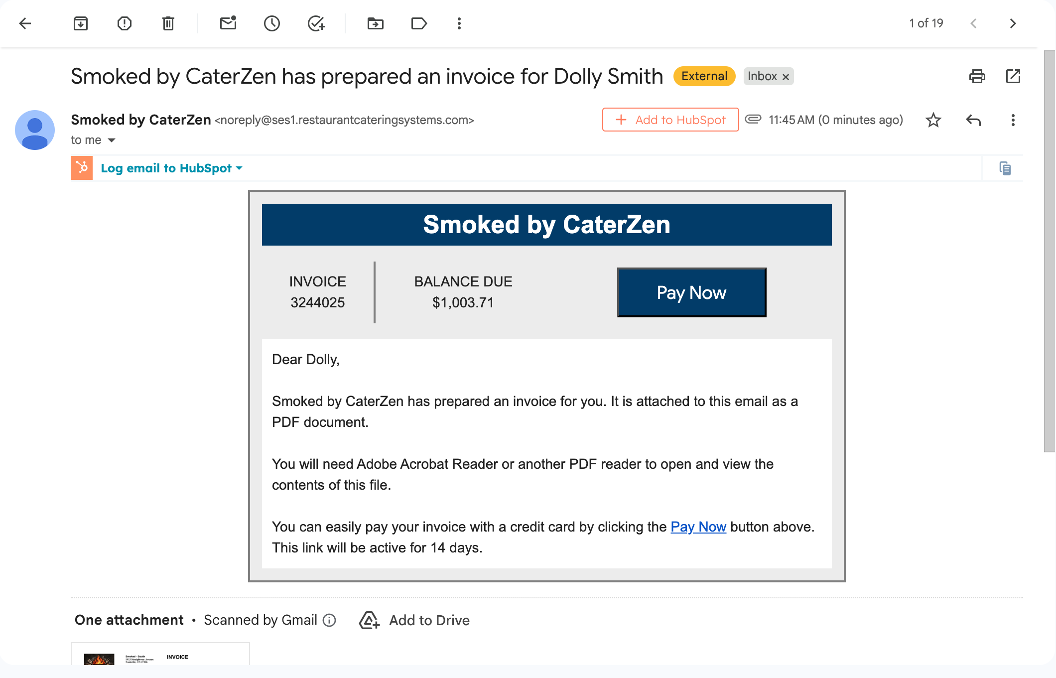 - The customer receives the email with the invoice attached as a PDF.